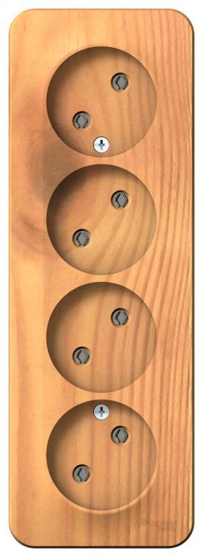 Розетка Systeme Electric (ранее Schneider Electric) BLANCA (ясень, открытой установки) четырехместная, без шторок и заземления, с изолирующей пластиной предназначена для сетей до 250В, на ток до 16А. четырехместная розетка позволяет подключить четыре устройства в одном месте. Изделия цвета Ясень обладают уникальным рисунком, напоминающим древесный сруб. Она изготовлена из ABS-пластика, проста в установке и удобна в применении.