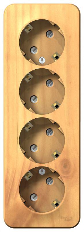 Розетка Systeme Electric (ранее Schneider Electric) BLANCA (ясень, открытой установки) четырехместная, с заземлением, шторками и изолирующей пластиной предназначена для сетей до 250В, на ток до 16А. Четырехместная розетка позволяет подключить четыре устройства в одном месте. Шторки и заземление обеспечивают дополнительную безопасность при косвенном прикосновении. Изделия цвета Ясень обладают уникальным рисунком, напоминающим древесный сруб.