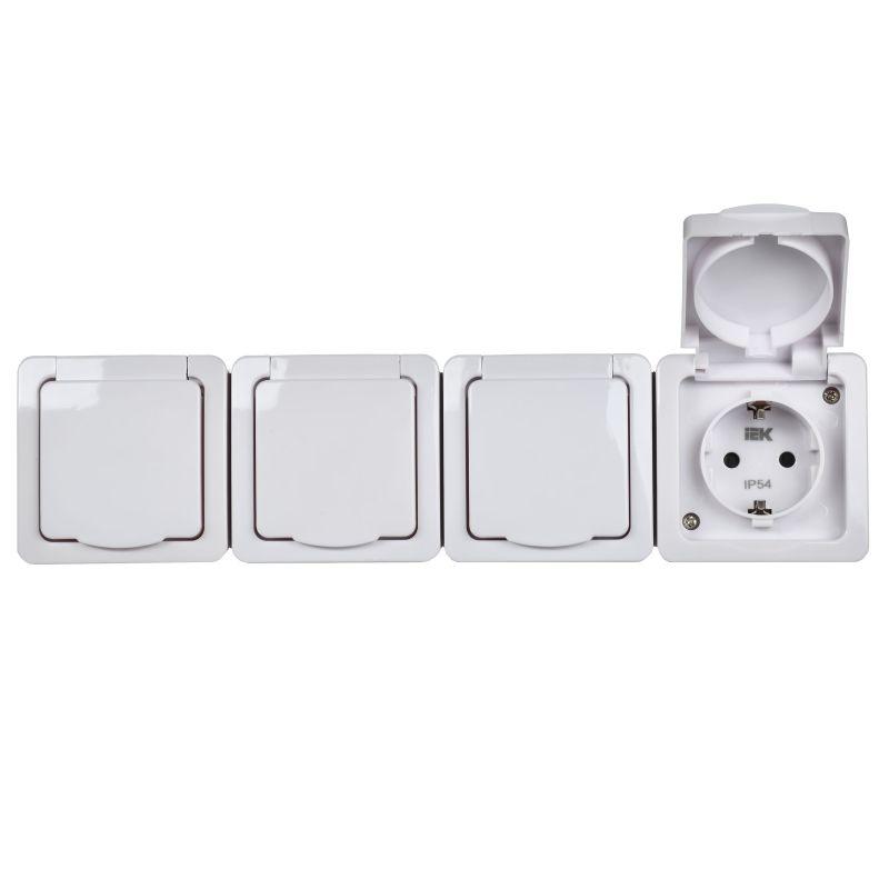 Розетка 4-м ОП Гермес Plus РСб24-3-ГПБб 16А IP54 с заземл. с крышкой бел. IEK ERMP42-K01-16-54-EC