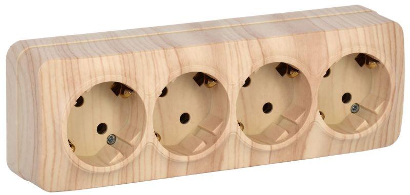 Розетка 4-м ОП GLORY РС24-3-ХС 16А с заземл. сосна IEK ERH41-K34-16