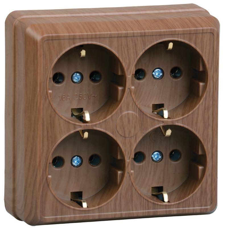 Розетка 4-м ОП Октава РС24-3-ОД 16А IP20 с заземл. дуб IEK ERO41-K04-16-DC