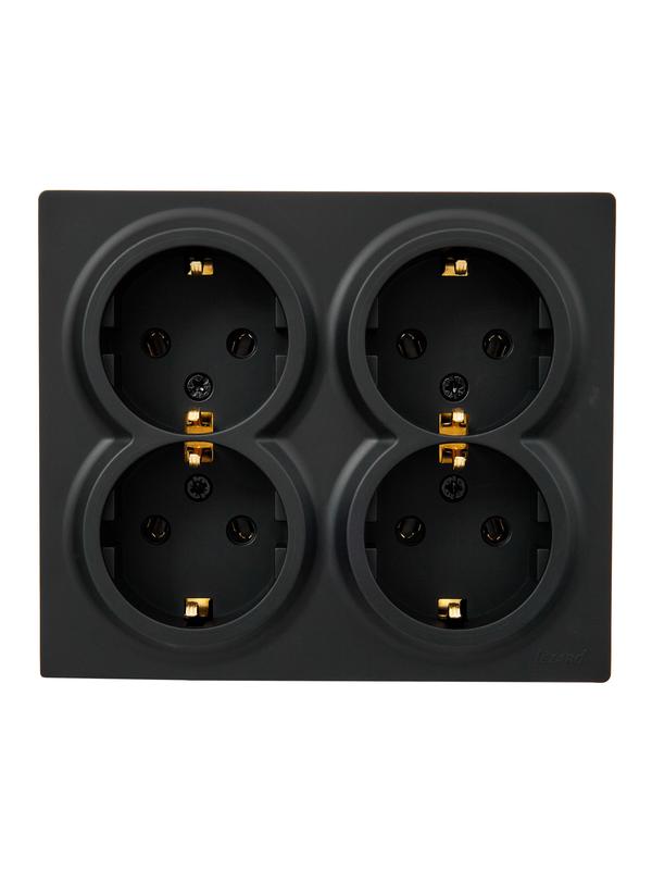 Розетка 4-мест. с заземл. LETO закрытый корпус ПБТ черн. бархат LEZARD 752-4200-127BDP