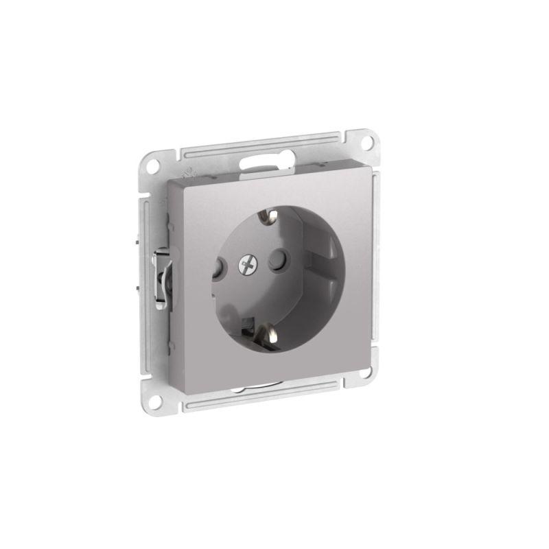 Механизм с быстрозажимными клеммами Systeme Electric (ранее Schneider Electric) серии AtlasDesign в цвете алюминий розетки одинарной с заземлением и со штороками подходит для сетей 250 В, на ток 16 А. С помощью новых быстрозажимных клемм монтаж розеток и выключателей стал намного быстрее. Теперь подключение не требует использования отвертки. Лицевые детали из качественного ABS-пластика, устойчивого к царапинам и УФ-излучению.
