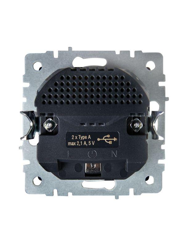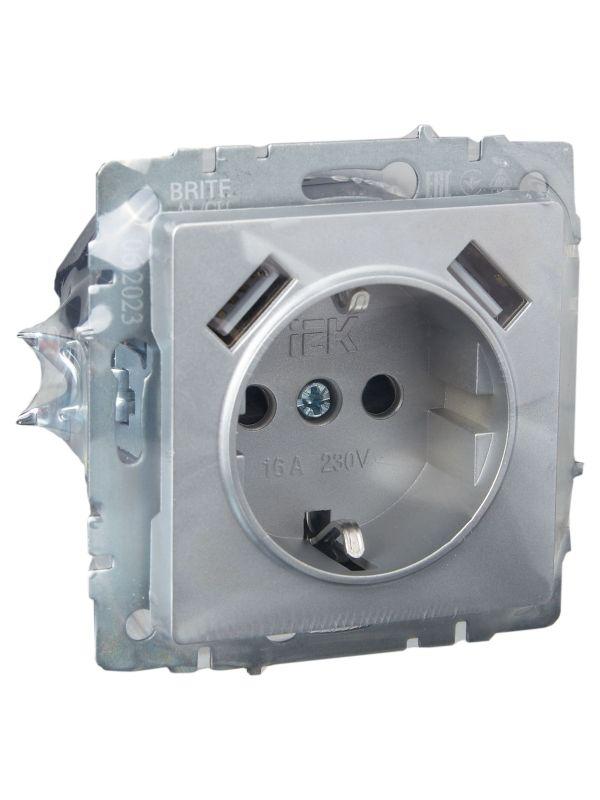 Розетка BRITE РЮш10-1-БрА 16А с USB A+A 2.1А с заземл. защ. шторки механизм алюм. IEK BR-R14-16-U21-D21-K47