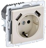 Розетка BRITE РЮш10-1-БрКр 16А с USB A+A 2.1А с заземл. защ. шторки механизм беж. IEK BR-R14-16-U21-D21-K10