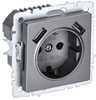 Розетка BRITE РЮш10-1-БрС 16А с USB A+A 2.1А с заземл. защ. шторки механизм сталь IEK BR-R14-16-U21-D21-K46