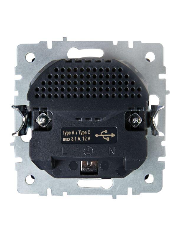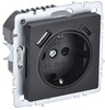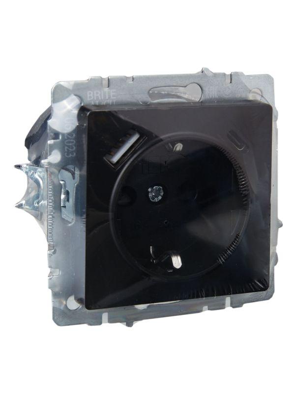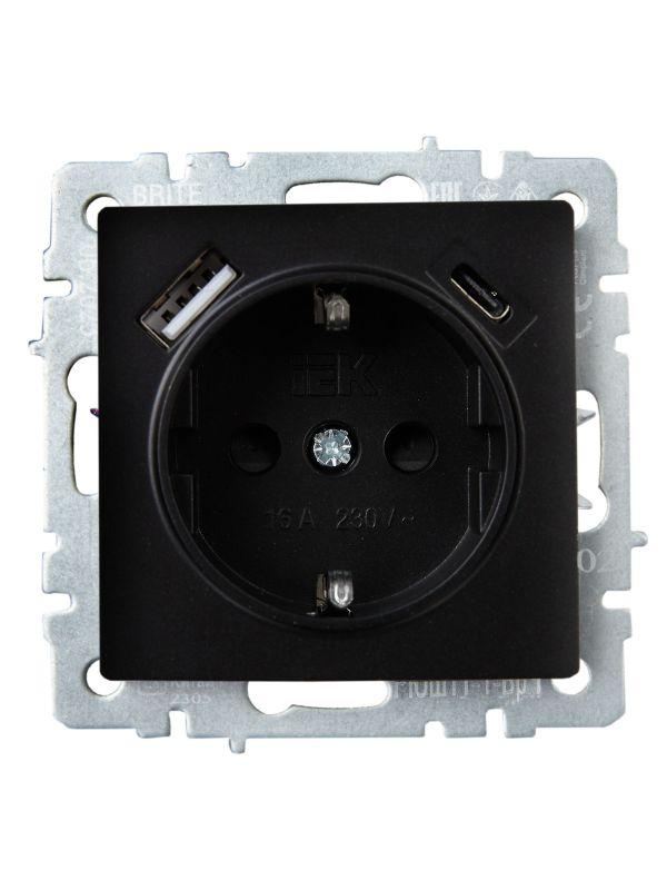 Розетка BRITE РЮш11-1-БрЧ 16А с USB A+C 18Вт с заземл. защ. шторки механизм черн. IEK BR-R14-16-U22-018-K02