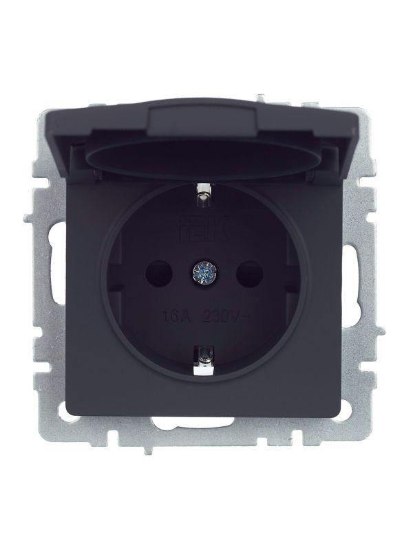 Розетка BRITE РСбш10-3-44-БрГ 16А IP44 с заземл. защ. шторки с крышкой механизм графит IEK BR-R16-16-44-K53