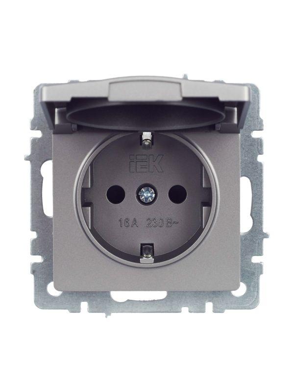 Розетка BRITE РСбш10-3-44-БрС 16А IP44 с заземл. защ. шторки с крышкой механизм сталь IEK BR-R16-16-44-K46