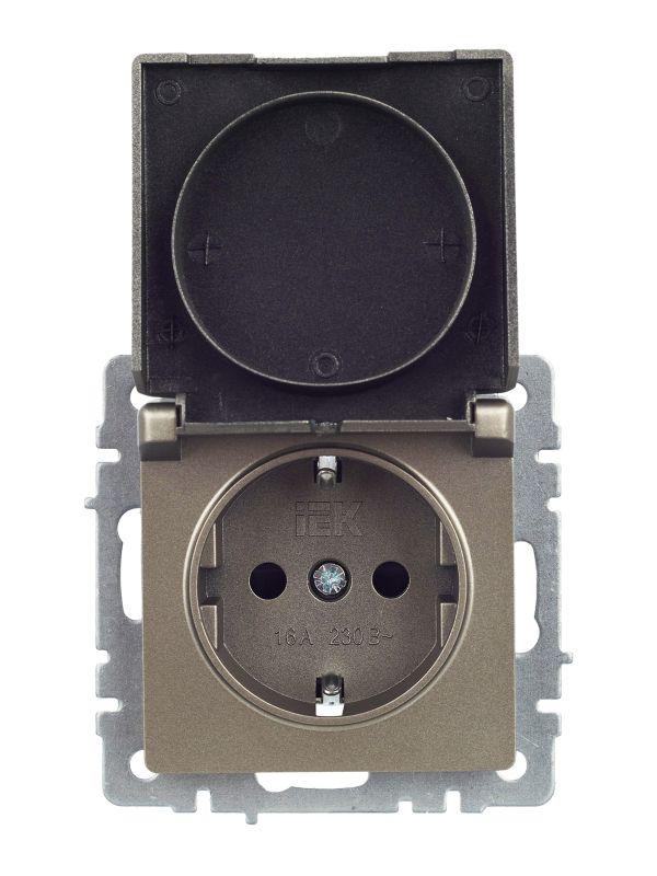 Розетка BRITE РСбш10-3-44-БрШ 16А IP44 с заземл. защ. шторки с крышкой механизм шампань IEK BR-R16-16-44-K37