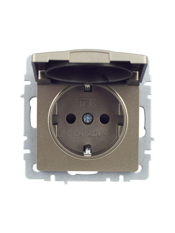Розетка BRITE РСбш10-3-БрШ 16А IP20 с заземл. защ. шторки с крышкой механизм шампань IEK BR-R16-16-K37