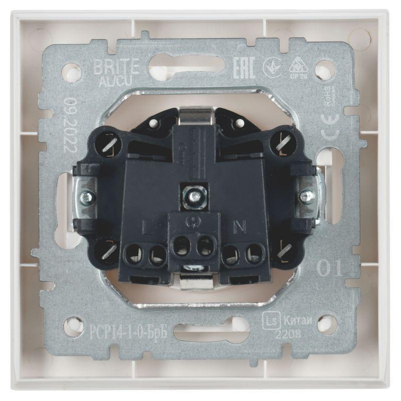 Розетка BRITE РСР14-1-0-БрБ 16А в сборе с заземл. защ. шторки бел. IEK BR-R14-16-K01-F