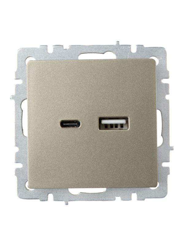 Розетка BRITE USB A+C 18Вт РЮ11-1-БрШ механизм шампань IEK BR-U22-018-K37