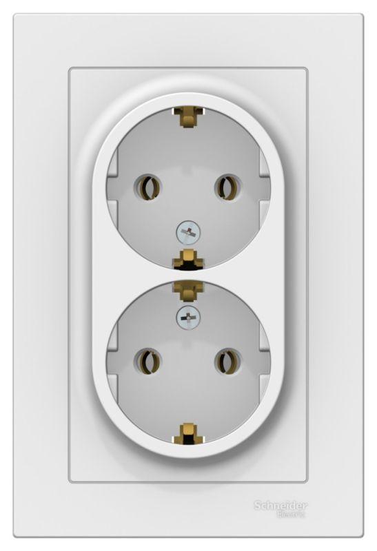 Розетка двойная Systeme Electric (ранее Schneider Electric) серии AtlasDesign (в сборе, цвет ЛОТОС) с заземлением, без шторок подходит для сетей 250 В, на ток 16 А. - Заземляющий контакт обеспечивает дополнительную защиту от удара электрическим током. - Лицевые детали из качественного ABS-пластика, устойчивого к царапинам и УФ-излучению. - Двойная розетка позволяет подключить два устройства в одном месте. - Изделие поставляется в комплекте с рамкой того же цвета.