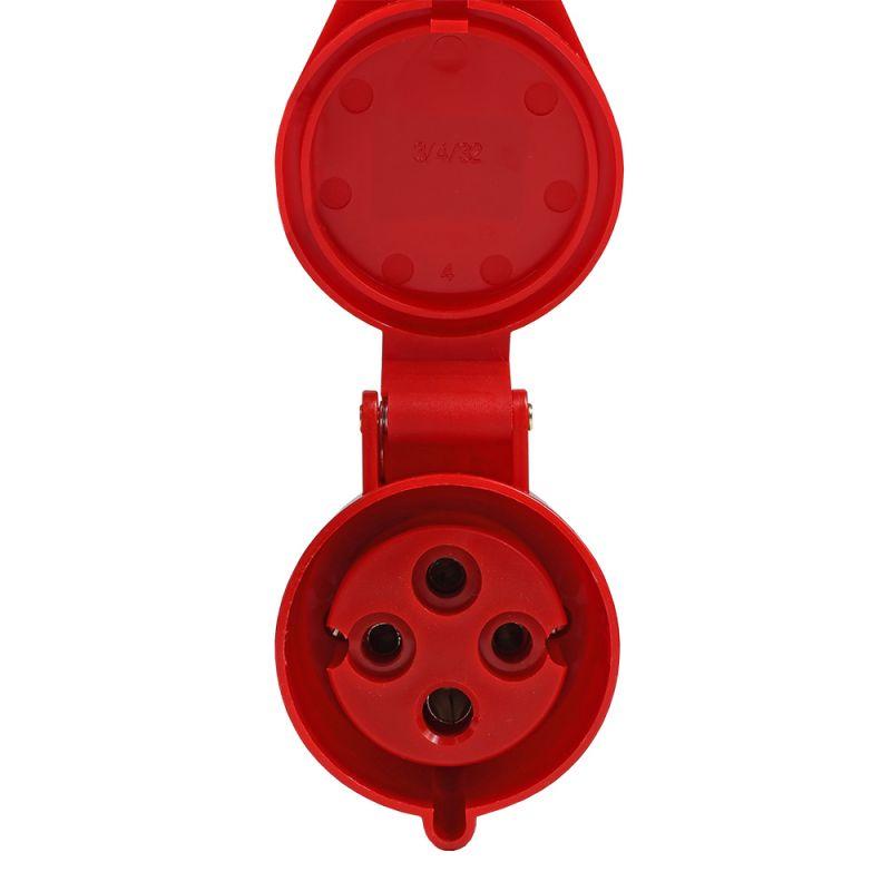 Силовая розетка 4 полюсная на номинальный ток 32 А и номинальное рабочее напряжение переменного тока 380 В.
