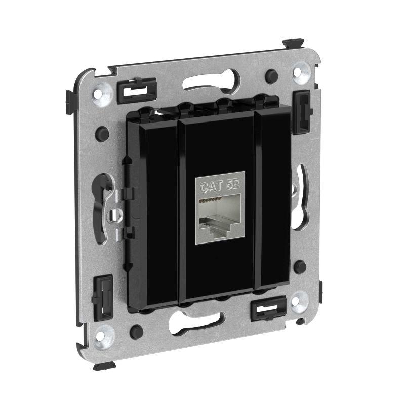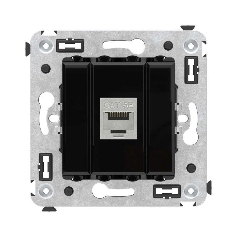 Компьютерная розетка одинарная экранированная без шторки используется для подключения компьютерной техники и соединения с патч-панелью. Компьютерная розетка предназначена для скрытого монтажа в стену, поставляется в комплекте с суппортом. Розетка RJ-45 категории 5e – это наиболее популярная на сегодняшний день модель. Она позволяет организовать сеть с частотой 125 МГц и скоростью до 1000 Мбит/с. Материал – металл, термопласт. Пластиковые детали устройства имеют оттенок "Черный квадрат".