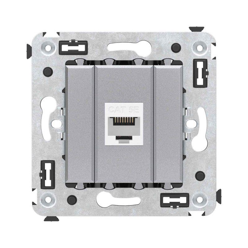 Компьютерная розетка без шторки используется для подключения компьютерной техники и соединения с патч-панелью. Компьютерная розетка предназначена для скрытого монтажа в стену, поставляется в комплекте с суппортом. Розетка RJ-45 категории 5e – это наиболее популярная на сегодняшний день модель. Она позволяет организовать сеть с частотой 125 МГц и скоростью до 1000 Мбит/с. Материал – металл, термопласт. Пластиковые детали устройства имеют оттенок "Закаленная сталь".