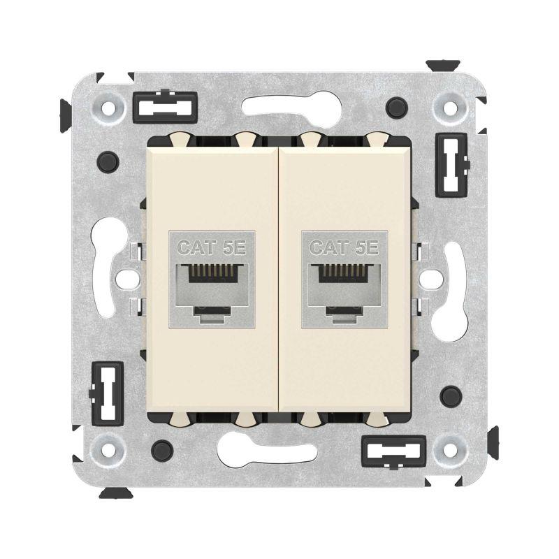 Компьютерная розетка двойная экранированная без шторки используется для подключения компьютерной техники и соединения с патч-панелью. Компьютерная розетка предназначена для скрытого монтажа в стену, поставляется в комплекте с суппортом. Розетка RJ-45 категории 5e – это наиболее популярная на сегодняшний день модель. Она позволяет организовать сеть с частотой 125 МГц и скоростью до 1000 Мбит/с. Материал – металл, термопласт. Пластиковые детали устройства имеют оттенок "Ванильная дымка".