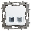 Розетка компьютерная + телефонная 2-м СП Etika RJ45 + RJ11 кат.5E UTP механизм бел. Leg 672252