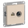 Механизм Systeme Electric (ранее Schneider Electric) серии AtlasDesign в бежевом цвете двойной розетки разъёмами RJ45 категория 5е и TV предназначен для удобного и быстрого подключения вашего компьютера и телевизора к соответствующим сетям. - Лицевые детали из качественного ABS-пластика, устойчивого к царапинам и УФ-излучению. - Усиленные прямые монтажные лапки для лучшей фиксации механизма в монтажной коробке.