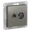 Механизм Systeme Electric (ранее Schneider Electric) серии AtlasDesign в цвете сталь двойной розетки разъёмами RJ45 категория 5е и TV предназначен для удобного и быстрого подключения вашего компьютера и телевизора к соответствующим сетям. - Лицевые детали из качественного ABS-пластика, устойчивого к царапинам и УФ-излучению. - Усиленные прямые монтажные лапки для лучшей фиксации механизма в монтажной коробке.