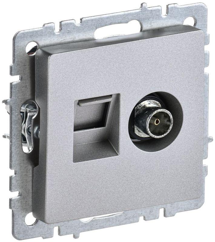 Розетка компьютерная + телевизионная 2-м Brite РТВ/РК12-БрА RJ45 кат.5E + TV механизм алюм. IEK BR-AK20-1-K47