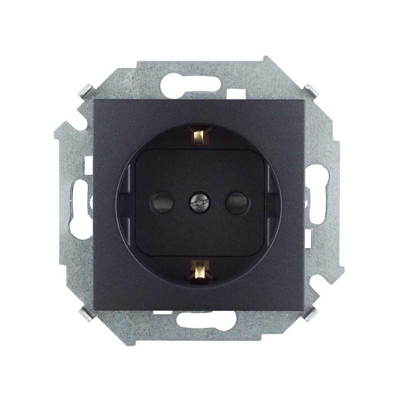 Розетка с заземлением 2P+E с защ. шторками 16А 250В винт. зажим графит Simon 1591443-038