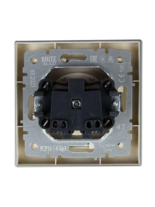 Розетка СП BRITE РСР10-1-0-БрА 10А в сборе без заземл. без защ. шторок алюм. IEK BR-R10-10-K47-F