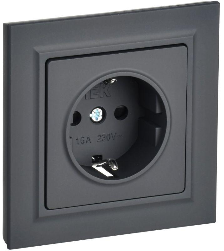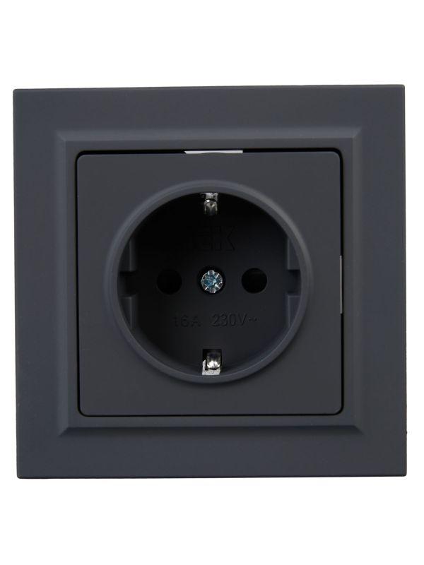Розетка СП BRITE РСР14-1-0-БрГ 16А в сборе с заземл. защ. шторки графит IEK BR-R14-16-K53-F