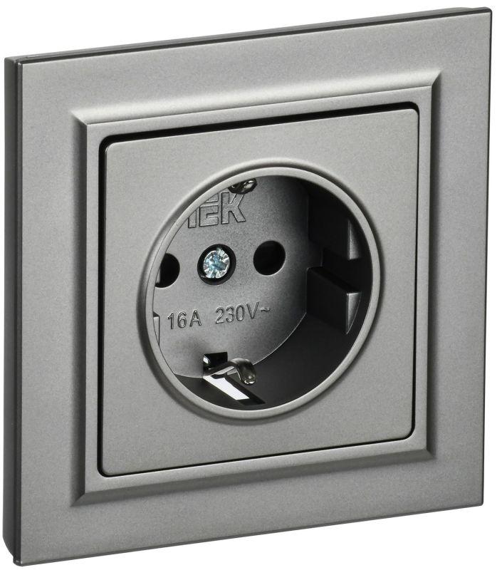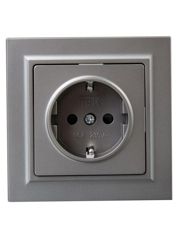 Розетка СП BRITE РСР14-1-0-БрС 16А в сборе с заземл. защ. шторки сталь IEK BR-R14-16-K46-F