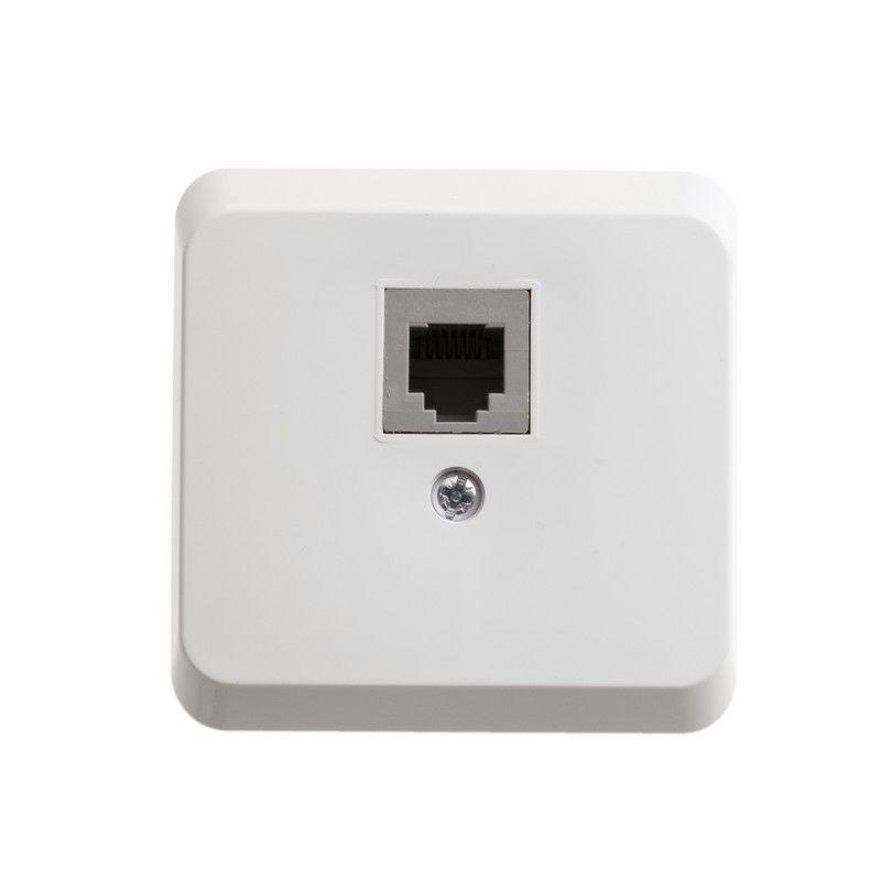 Розетка телефонная RJ 11, белая, наружная установка. серия продукта: Этюд - тип устройства или его аксессуаров: телефонная розетка - комплектация изделия: механизм в сборе - тип покрытия: глянцевая - монтаж: винтами, лапками - тип разъема: RJ11. Преимущества: Удачное решение для города и дачи, Доступная цена, Современный дизайн, Высокая степень надежности, Большой выбор функциональных возможностей и цветовых сочетаний, Простота и удобство монтажа, Соответствие ГОСТ Р и МЭК, Удобная упаковка.. применения: - Для загородного жилья, Для торговых центров, павильонов, зданий из сэндвич-панелей, где невозможно штробление стен, Прекрасная замена вышедших из строя электроустановочных изделий в многоквартирных домах, Для влажных помещений (IP44)..