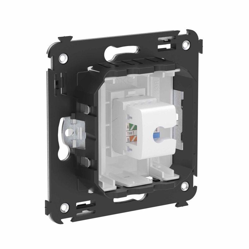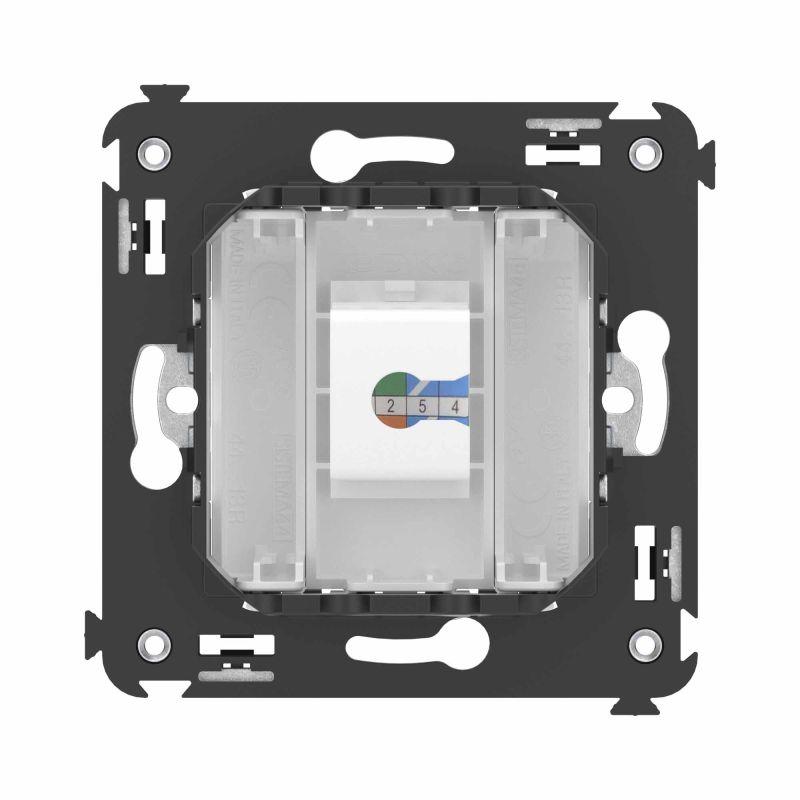 Телефонная розетка RJ-12 без шторки используется для коммутации линий телефонной связи в патч-панелях или для связи телефонных аппаратов с розеткой. Предназначена для скрытого монтажа в стену, поставляется в комплекте с суппортом. Материал – металл, термопласт. Пластиковые детали электроустановочного изделия имеют цвет "Белое облако".