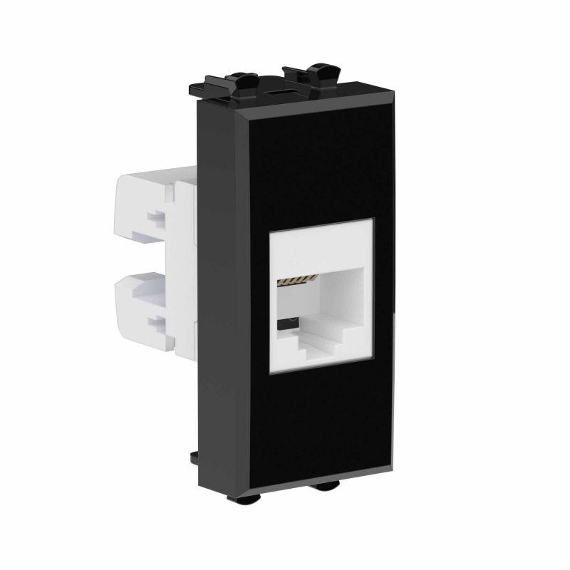 Телефонная розетка RJ-12 модульная без шторки. Предназначена для комплектации систем организации рабочих мест (кабель-каналов, лючков, башенок, колонн) при помощи рамок-суппортов и каркасов "Avanti" (код 4400912 и т.д.). Служит для подключения телефонного кабеля к рабочему месту. 6P6C. В комплекте разъем Keystone. Для заделки контактов используется инструмент типа 110. Фиксация в подрозеточные коробки глубиной не менее 45 мм производится при помощи каркаса с лапками (код 4400802) и саморезов. 1 модуль. Цвет: "Черный квадрат".