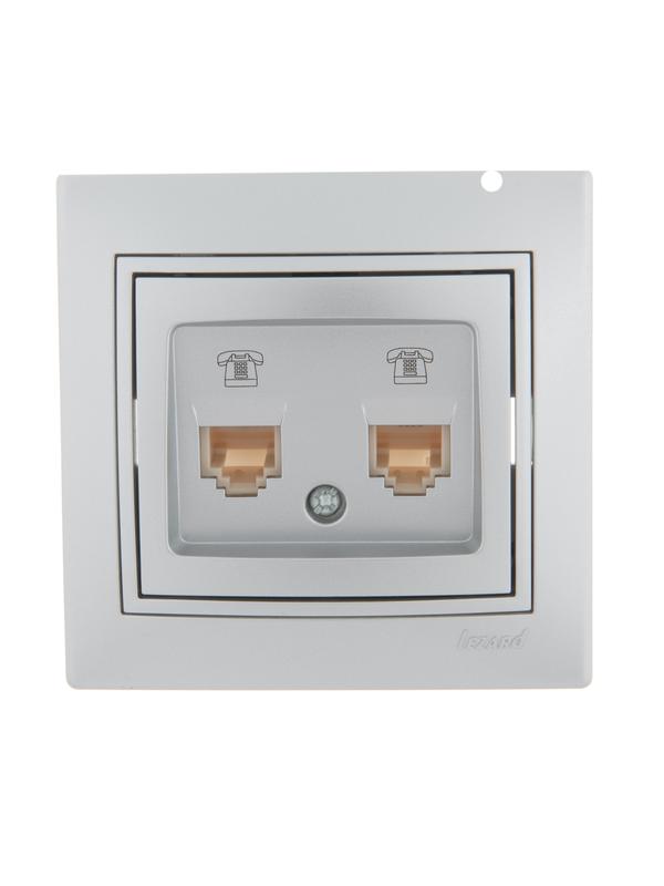 Розетка телефонная 2-м СП Mira RJ11 сер. метал. LEZARD 701-1010-138