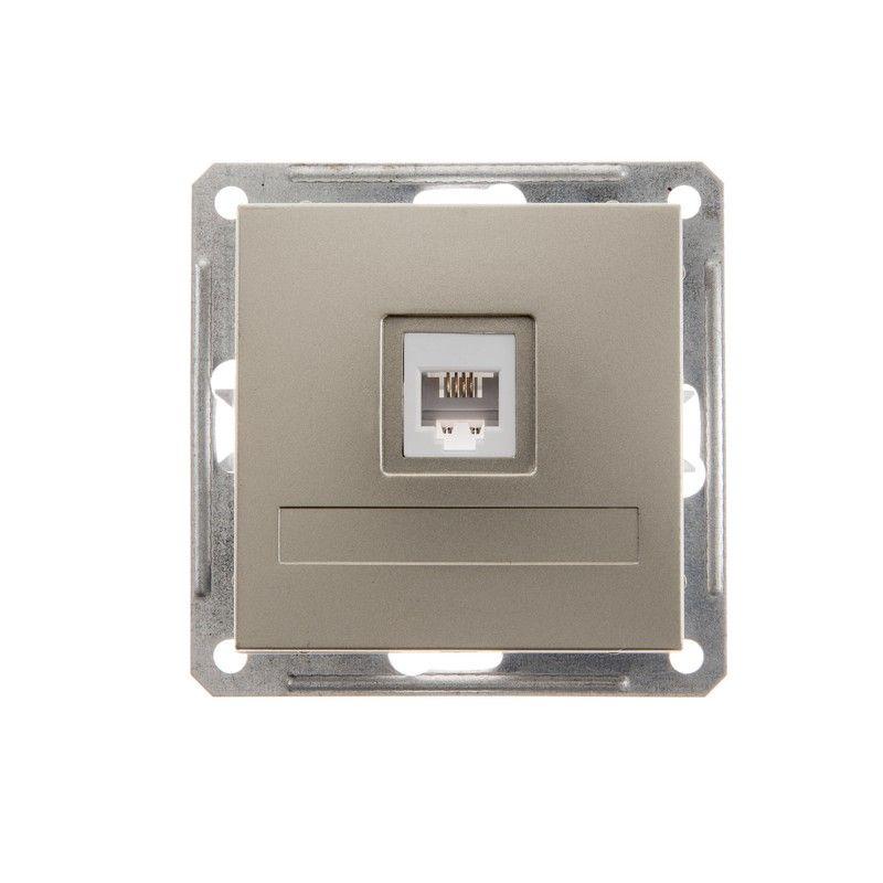 W59 розетка телефонная RJ11, 160В, 1А, механизм, шампань. серия продукта: W59 - тип устройства или его аксессуаров: телефонная розетка - комплектация изделия: механизм - оттенок цвета: золотой - тип покрытия: окрашенный - монтаж: лапками, винтами - тип разъема: RJ11. Преимущества: Под стать характеру, Доступная цена, Современный дизайн, Безопасность монтажа и эксплуатации, Надежная установка в любые монтажные коробки, Большой выбор функциональных возможностей и цветовых сочетаний, Поставка изделий как без рамок – механизмы с лицевыми панелями, так и в сборе – готовое решение, Соответствие ГОСТ Р, Удобная упаковка.. применения: - Для недорогого ремонта, Для офисов класса В, Для гостиниц..