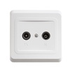 Розетка TV/FM оконечная 2 ДБ. диапазон: Etude - тип устройства или его аксессуаров: ТВ/Р розетка - ТВ розетка: одиночная. Преимущества: Удачное решение для города и дачи, Доступная цена, Современный дизайн, Высокая степень надежности, Большой выбор функциональных возможностей и цветовых сочетаний, Простота и удобство монтажа, Соответствие ГОСТ Р и МЭК, Удобная упаковка.. применения: - Для загородного жилья, Для торговых центров, павильонов, зданий из сэндвич-панелей, где невозможно штробление стен, Прекрасная замена вышедших из строя электроустановочных изделий в многоквартирных домах, Для влажных помещений (IP44)..