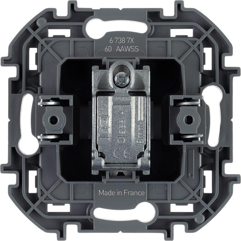 Розетка телевизионная Legrand Inspiria для скрытого монтажа, оконечная для схемы "шлейф", 10 дБ 4-862 МГц, цвет "Алюминий". Используется для подключения одного ТВ приемника к антенне, а также для организации телевизионной сети по схеме "шлейф", когда к каждому телевизору шлейфом прокладывается одна общая линия от источника сигнала. Особенности изделия: - Корпус механизма изготовлен из металлического сплава, обладает степенью экранирования Class A и защищает сигнал от электромагнитных помех. - Присоединение коаксиального кабеля к розетке осуществляется удобным безвинтовым коннектором. - Лицевая панель изготовлена из качественного пластика ABS, устойчивого к загрязнению и воздействию УФ-излучения.