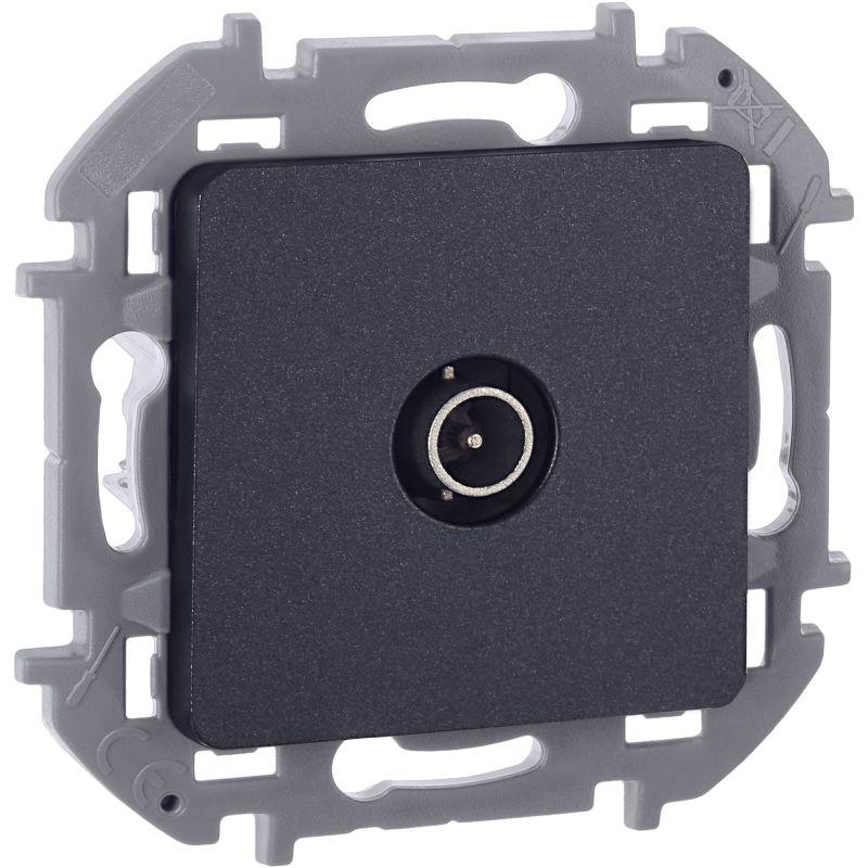 Розетка телевизионная Legrand Inspiria для скрытого монтажа, оконечная для схемы "шлейф", 10 дБ 4-862 МГц, цвет "Антрацит". Используется для подключения одного ТВ приемника к антенне, а также для организации телевизионной сети по схеме "шлейф", когда к каждому телевизору шлейфом прокладывается одна общая линия от источника сигнала. Особенности изделия: - Корпус механизма изготовлен из металлического сплава, обладает степенью экранирования Class A и защищает сигнал от электромагнитных помех. - Присоединение коаксиального кабеля к розетке осуществляется удобным безвинтовым коннектором. - Лицевая панель изготовлена из качественного пластика ABS, устойчивого к загрязнению и воздействию УФ-излучения.
