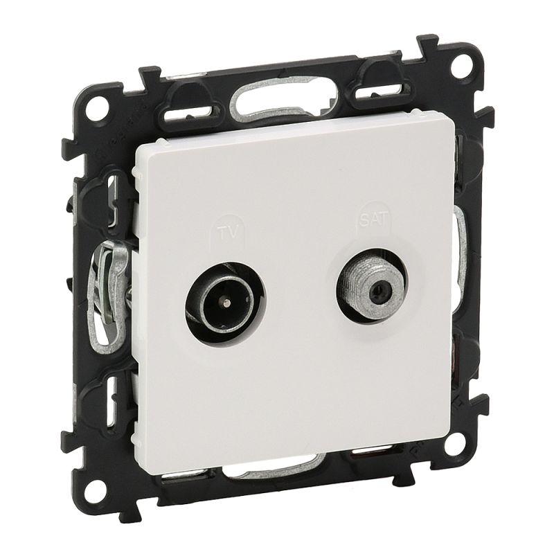 Розетка телевизионная проходная TV/SAT 2-м Valena Life 1.5дБ/14дБ 5-862МГц/950-2400МГц с лицев. панелью механизм бел. Leg 753463