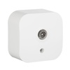ТВ-розетка тип "звезда" Legrand Quteo, цвет белый.Используется для подключения одного ТВ приемника к антенне, а также для организации телевизионной сети по схеме "звезда", когда к каждому телевизору прокладывается своя линия от источника сигнала. Особенности: - Частотный диапазон 0-862МГц.Подходит для цифрового телевиденья - Комплектуется инструкцией. Особенности серии Quteo: - Современный формат накладного монтажа - Механизм изготовлены из высококачественного поликарбоната, не проводит электрический ток, не поддерживает горение. - Простое выравнивания изделий при установке в ряд,благодаря специальной форме основания. - Корпус ударопрочный из пластичного полипропилена стойкого к внешним воздействиям. - Перфорация на корпусе для безошибочного вырезания отверстий при монтаже открытой проводки - В основании преднарезаны 4 отверстия для подвода кабеля при монтаже скрытой проводки