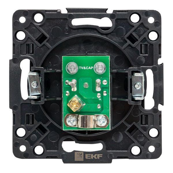 Розетка TV EKF серии Стокгольм станет отличным решением для стильного помещения при подключении устройств к телевизионной сети. Выполнена из поликарбоната, устойчивого к ультрафиолетовому излучению. Изделие необходимо дополнить рамкой.