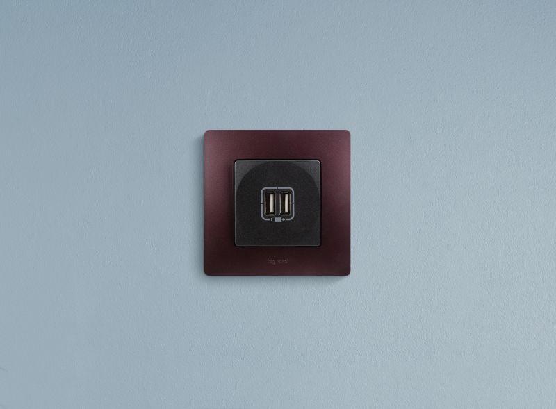 Розетка USB 2-м СП 2мод. Etika 240В/5В 2400мА механизм антрацит Leg 672694