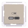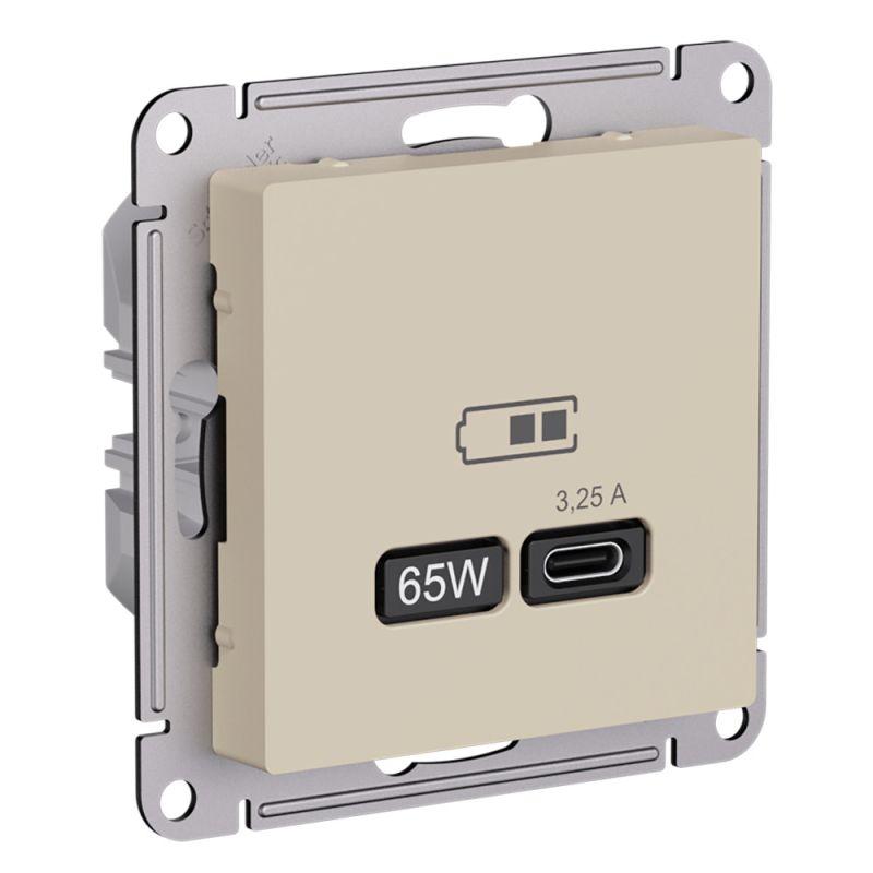 Розетка Systeme Electric (ранее Schneider Electric) серии AtlasDesign (цвет песочный) USB с разъемом типа C высокоскоростная. Самая современная USB-зарядка позволяет заряжать ноутбук, а также смартфоны последнего поколения, которые поддерживают функцию быстрой зарядки. Мощность: тип-С - 65Вт. Поддерживает современные протоколы быстрой зарядки QC, PD, последних версий. Лицевые детали из качественного ABS-пластика, устойчивого к царапинам и УФ-излучению.