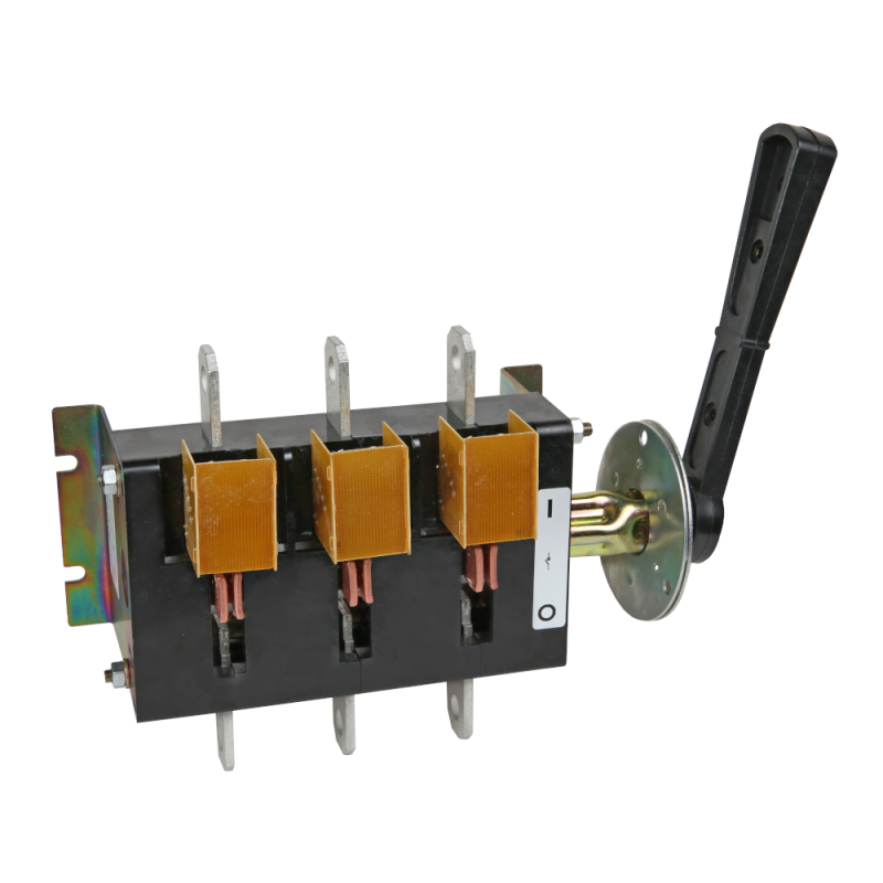 Выключатель-разъединитель 3 полюсный на номинальный ток 400 А, в котором установлена съемная рукоятка.
