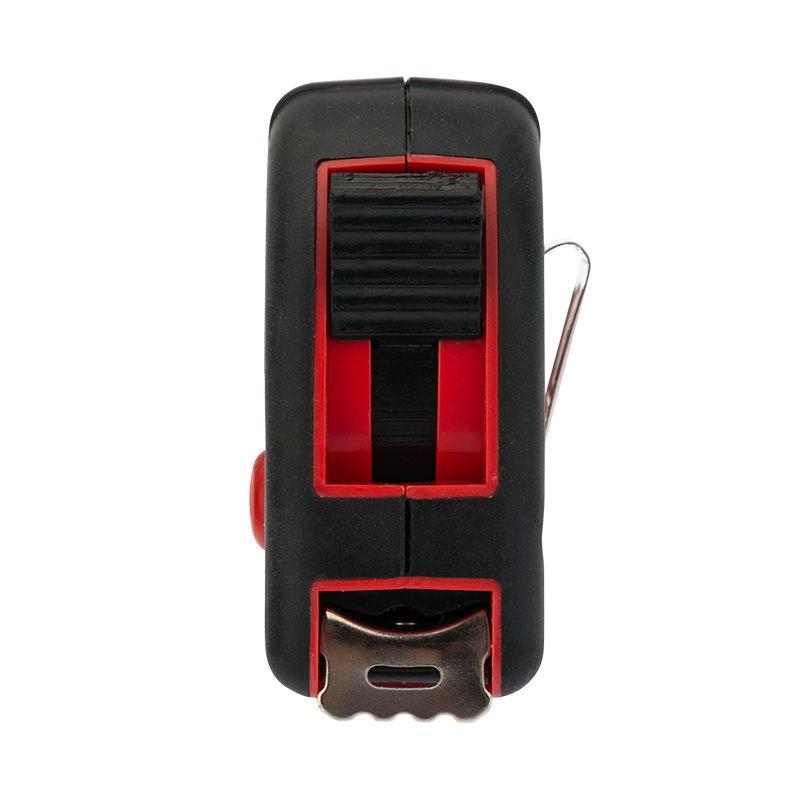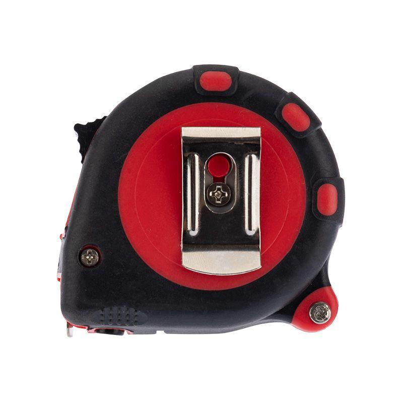 Измерительная рулетка REXANT Профи необходима при проведении измерительных работ в строительстве, хозяйстве, ландшафтных и геодезических исследованиях. Двухкомпонентный прорезиненный корпус, выполненный из ударопрочного пластика, не скользит в руках. Прочное полотно без изломов имеет глянцевое покрытие. Для удобства использования предусмотрены кнопки стопора и фиксации тормоза. Инструмент оснащен удобным зацепом с отверстием посередине, которое позволяет зафиксировать полотно рулетки на шляпке гвоздя или самореза. На корпусе расположена клипса-зажим для фиксации рулетки на ремне, кармане или поясной сумке. Ремешок позволяет надевать инструмент на запястье, чтобы освободить руки для работы.