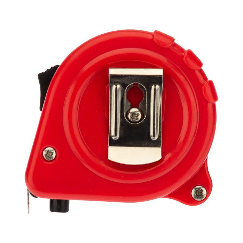 Измерительная рулетка REXANT Стандарт используется при проведении измерительных работ в строительстве, хозяйстве, ландшафтных и геодезических исследованиях. Двухкомпонентный прорезиненный корпус, выполненный из ударопрочного пластика, не скользит в руках. Прочное полотно без изломов имеет глянцевое покрытие. Для удобства использования предусмотрены кнопки стопора и фиксации тормоза. Инструмент оснащен удобным зацепом с отверстием посередине, которое позволяет зафиксировать полотно рулетки на шляпке гвоздя или самореза. На корпусе расположена клипса-зажим для фиксации рулетки на ремне, кармане или поясной сумке. Ремешок позволяет надевать инструмент на запястье, чтобы освободить руки для работы.