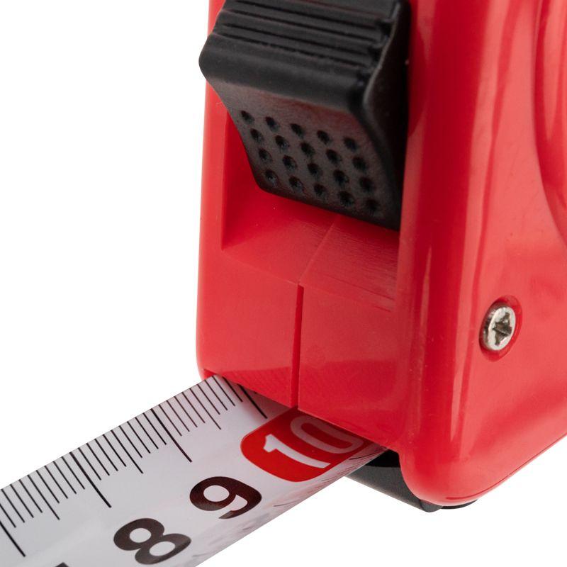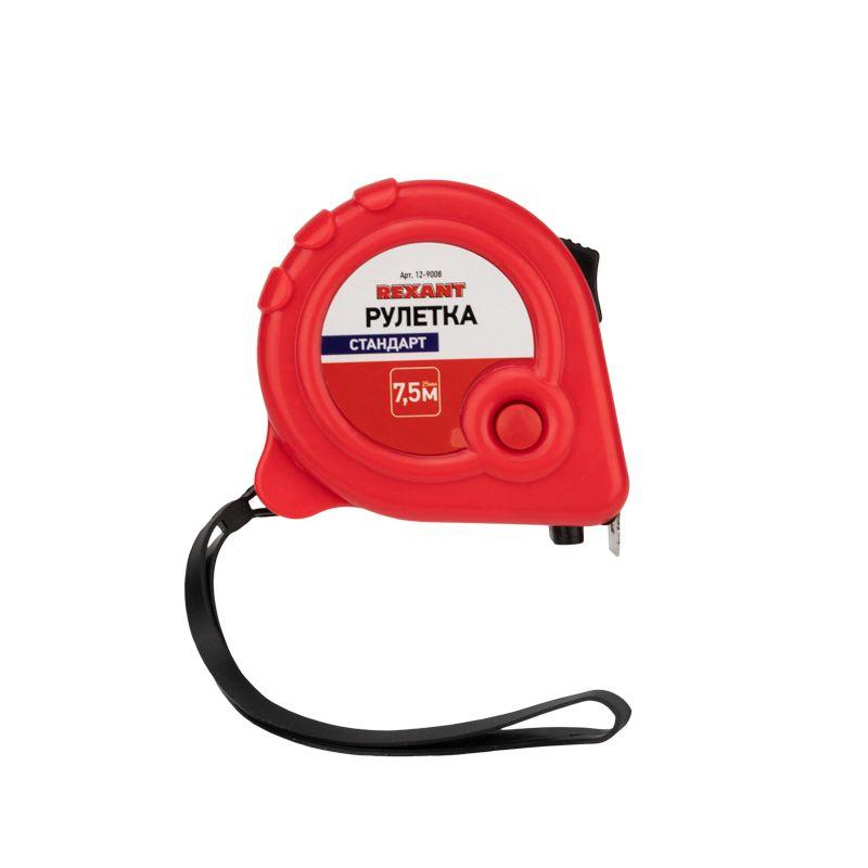 Измерительная рулетка REXANT Стандарт используется при проведении измерительных работ в строительстве, хозяйстве, ландшафтных и геодезических исследованиях. Двухкомпонентный прорезиненный корпус, выполненный из ударопрочного пластика, не скользит в руках. Прочное полотно без изломов имеет глянцевое покрытие. Для удобства использования предусмотрены кнопки стопора и фиксации тормоза. Инструмент оснащен удобным зацепом с отверстием посередине, которое позволяет зафиксировать полотно рулетки на шляпке гвоздя или самореза. На корпусе расположена клипса-зажим для фиксации рулетки на ремне, кармане или поясной сумке. Ремешок позволяет надевать инструмент на запястье, чтобы освободить руки для работы.