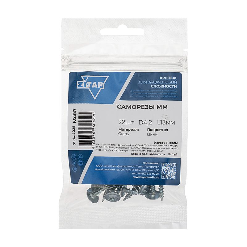 Саморез усиленный для тонкого метал. листа 4.2х13 (пакет) (уп.22шт) Tech-Krep PRO/Zitar 102387