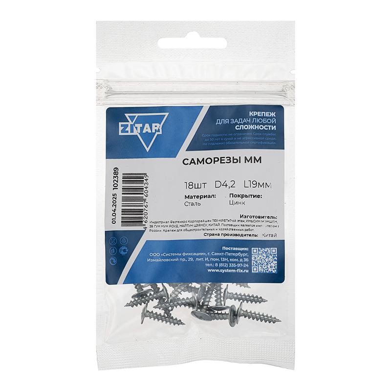 Саморез усиленный для тонкого метал. листа 4.2х19 (пакет) (уп.18шт) Tech-Krep PRO/Zitar 102389