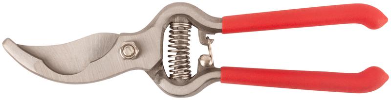 Цельнокованый. Для обрезания побегов и веток толщиной до 23 мм. Материал: лезвие из инструментальной стали, ПВХ покрытие ручек. Упаковка: блистер.